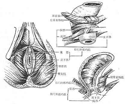 1)皮下部:位于肛管下端皮下,肌束呈環形,前方附著于會陰中心腱,后方附著于肛門下端皮下肛尾韌帶。手術損傷或需要切斷此部時,不致引起大便失禁。