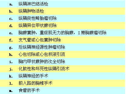 胸腔鏡縱隔手術(shù)可用于腫瘤的病理學(xué)取材、腫瘤的分期、以及對縱隔腔病變診斷不明時(shí)的探查等診斷過程,也可用于對縱隔實(shí)質(zhì)性良性腫瘤(< 5 cm)切除等,以及部分惡性腫瘤的切除。