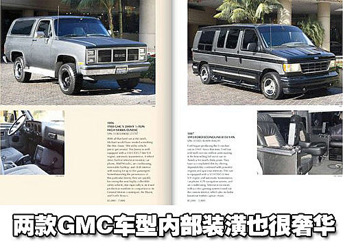 除了以上這款豪華車外,邁克爾杰克遜還擁有一臺1990勞斯萊斯銀刺二代,該車采用了白色真皮與黑色織物強烈對比的裝潢。黑色的車窗用白色的窗簾作為裝飾,此外還有一個功能齊全的酒吧間。另外兩款豪華車型分別為1988林肯Town Car以及1954凱迪拉克Fleetwood,這兩款車型均采用了極為精致的裝潢。
